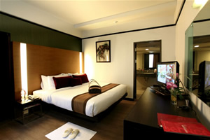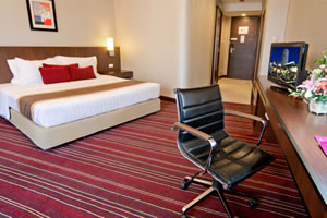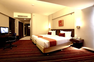 with choice of king sized bed to twin beds, featuring individually controlled air-conditioning, flat screen TV with international satellite TV channels/programs,