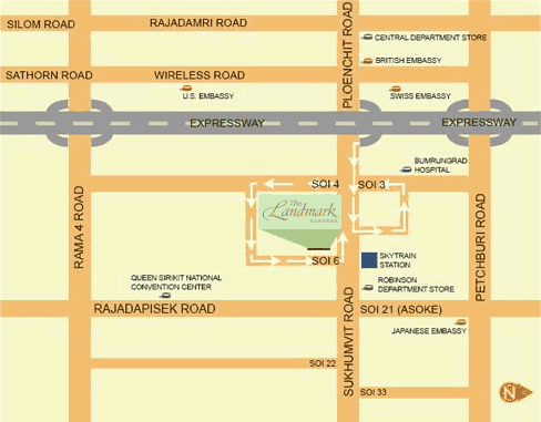 Following major renovations, The Landmark Bangkok Hotel has reaffirmed its position as one of Bangkok's most enduringly popular hotels. Part of that success is due to its convenient location on Sukhumvit Road in central Bangkok, close to the Nana station of Bangkok's Sky train System, from where it also enjoys easy access to all the important expressways. |