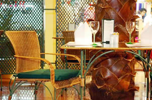 Relax in tropical furniture in a cool garden setting with towering palm trees. Choose from a comprehensive menu of fresh salads, delicious soups, burgers, fish and chips, pizzas, Bangkok’s best sandwiches, French pastries, home-made ice cream. Capacity : 40 seats Open Daily : 07.00 am. – 12.00 am. |
