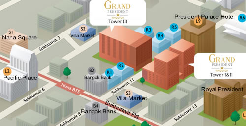 The chic shopping complexes of Terminal 21, Siam Paragon, Siam Center, Siam Discovery Center, Central Chidlom, Gaysorn Plaza and CentralWorld are short rides away from the BTS Skytrain Nana station. Also near are Queen Sirikit National Convention Center, Bumrungrad International Hospital and the U.S., British, Swiss and Vietnamese embassies. The nearby expressway provides for convenient airport access. |