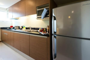 One Bedroom Lohas Suite (60 sq.m.) Our One Bedroom Lohas Suite is a living space designed for individuals or couples who plan for long term stays in Bangkok. With a large floor space and comfortable living room, the suite comes fully furnished with a stocked kitchenette for some days you want to cook in, the suite is also equipped with a built in washer/dryer, 32" LCD TV with satellite and multi-language broadcasts, a DVD player and beautiful city views. |