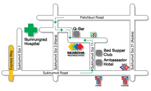 | The hotel is located in Sukhumvit Soi 11. It is ideally located