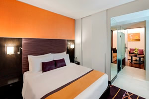 | One Bedroom Suite 55 square metres, or 592 square feet, with a king bed Offering contemporary decor and generous amenities, Radisson One-bedroom Suites in Sukhumvit are ideal for long stays, business travellers and families on leisure vacations. Additional Amenities: