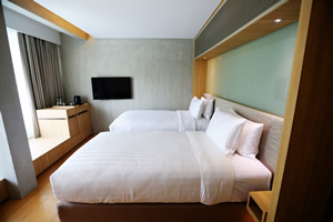 | 32 Plush Rooms (size: 25 sq.m.) Plush room 32 Rooms with 16 Twin bed & 16 King size bed (King bed size 6 feet and Twin bed size 3.5 feet) Plush Room is a neutral palette, rendered in a harmonious blend of texturally bold materials and soft textiles, creates a space that is sophisticated yet organic. Both room types are decked out with plush beds, a range of hypoallergenic pillows, and premium bed linens, along with top-of-the-line amenities, perfect for a luxurious rest after a long day. 16 Extra Plush Rooms (size: 25 sq.m.) Extra Plush room 16 Rooms with 8 Twin bed & 8 King size bed (King bed size 6 feet and Twin bed size 3.5 feet); 4 Connecting rooms with Plush room & Extra Plush room. Extra plush rooms are more spacious in configuration and features a 360° service package, which includes daily BTS passes, a data package for your hotel-provided Samsung Galaxy phone, and some additional TLC for each room Additional Amenities (subject cancel without prior notice):