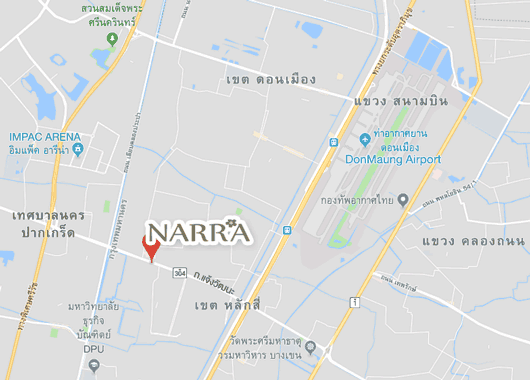 Narra Hotel is located on Chaeng Wattana Road midway between Don Mueang Airport and the city center.